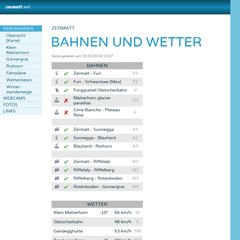 Temas: Übersicht (karte), Klein Matterhorn, Gornergrat, Rothorn, Fahrpläne, y Wetterdaten.