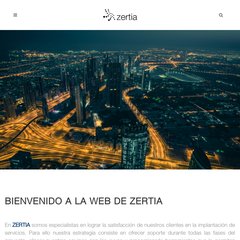 Temas: Zertia, Compañía, Carta Abierta, Trabaja Con Nosotros, Nuestras Oficinas, y Soluciones.